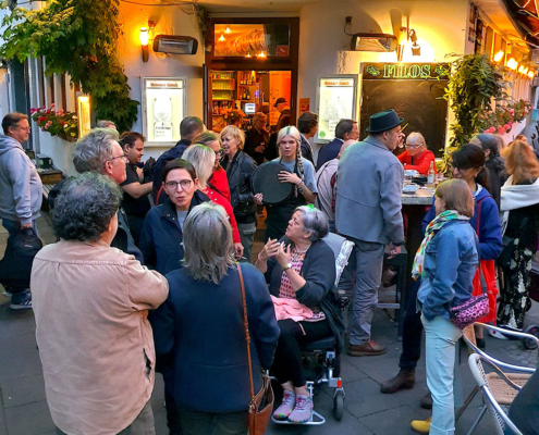10.9 15:20 Uhr | Stimmen der Straße – Klänge der Stadt – Impro von Hans Mörtter mit Klaus dem Geiger | Johanneshaus, Annostraße |